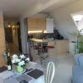 Notre appartement se situe au deuxième étage d'une résidence à proximité du centre historique de Ribeauvillé. Il comprend une pièce à vivre avec une cuisine équipée ( pas de lave vaisselle ) ouverte sur le salon / séjour coin repas et coin détente...